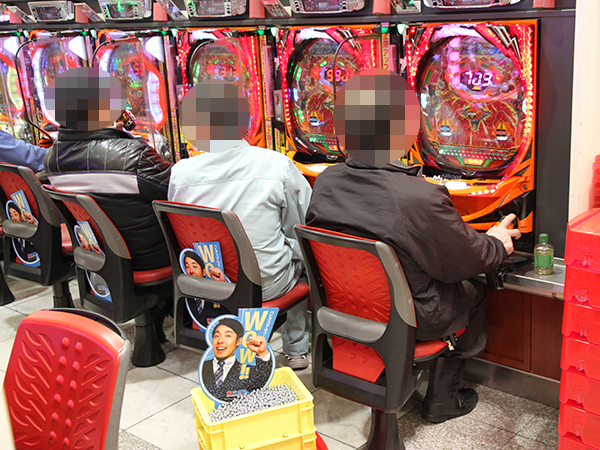 14時ごろの4円パチンコでは、「CR真・花の慶次2」や「CR大海物語4」がにぎやかなムード。見事なパフォーマンスを披露するプレイヤーが多く、そこかしこで華々しいシーンが見られた。