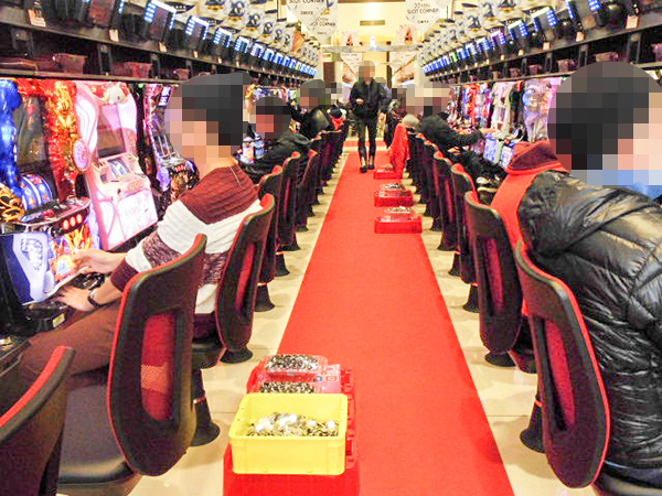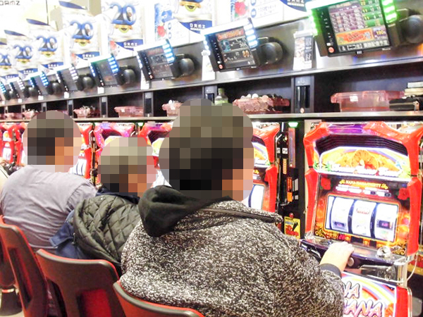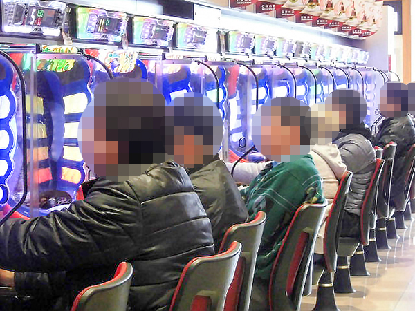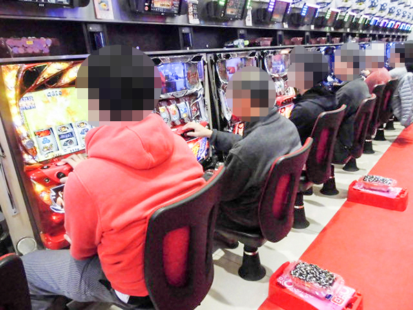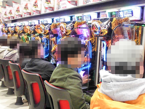 14時半ごろに4円パチンコをチェックすると、「CR真・花の慶次2」や「CR牙狼GOLDSTORM翔」が活況。機種性能を堪能しているプレイヤーが数多く見受けられ、シマ全体が活気を帯びていた。