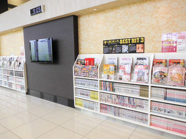 レストコーナーにはたくさんの漫画本が用意されており、自由な閲覧が可能。休憩時間などにゆったりと楽しむことができる。