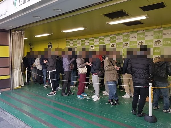 朝イチには50名ほどのパチスロファンが集まっており、オープンとともに楽しそうな表情で入場していった。