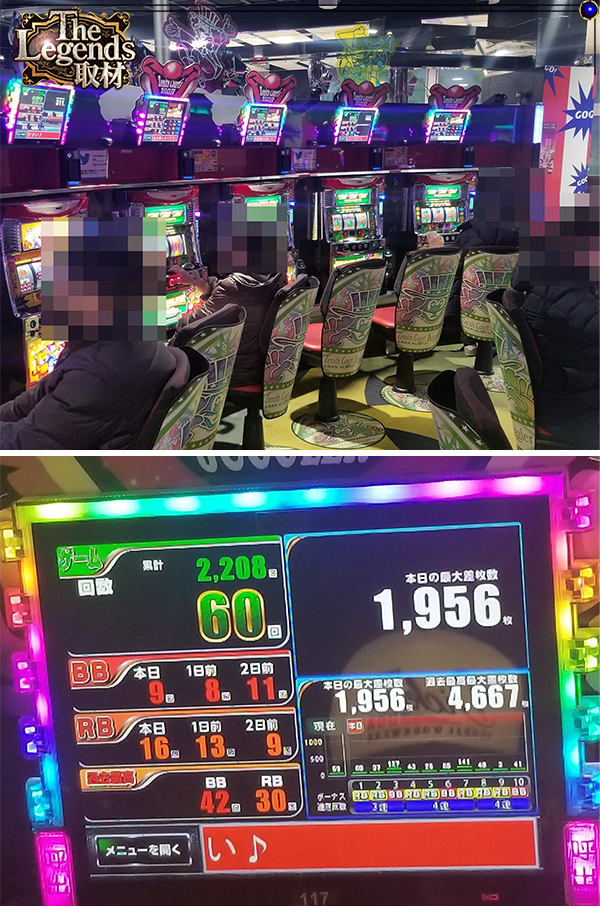 1箱アリ。BIG9回/REG16回(総ゲーム数2208G)/最大差枚数1956枚