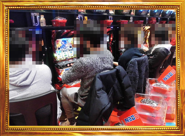 17時頃の20円パチスロでは、「押忍!番長3」や「パチスロ聖闘士星矢 海皇覚醒」が大盛況。華麗なパフォーマンスを披露しているプレイヤーやにこやかな表情でレバーを叩いているシーンも確認している。
