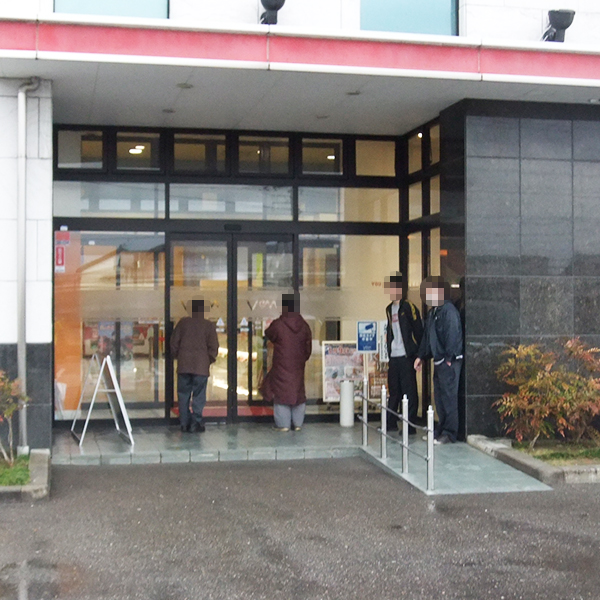 悪天候にもかかわらず、開店前からたくさんのプレイヤーが集合。遊技を心待ちにしている様子がうかがえた。