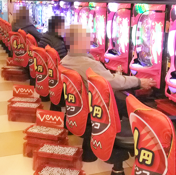 1円パチンコは朝に引き続きにぎやかなムード。スペックに関係なく、あちこちで活躍するプレイヤーを目にしている。