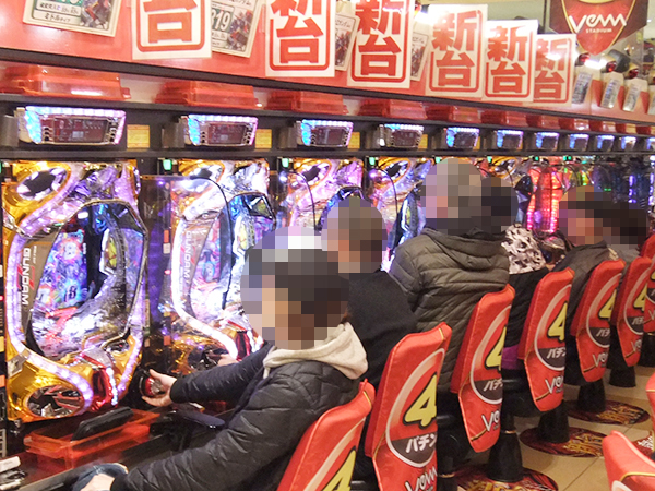 新台の「CRフィーバー機動戦士Zガンダム」も好評で、空き台が見当たらない状況。