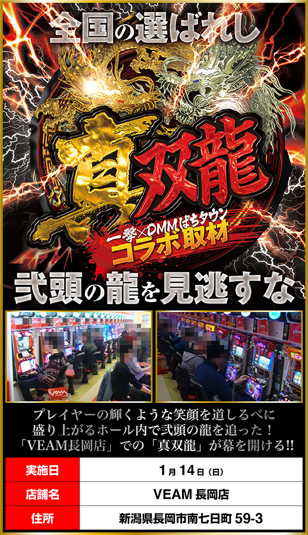 舞台となった「VEAM長岡店」には多くのプレイヤーが集まっており、パチンコとパチスロがどちらも明るい雰囲気となっていた。