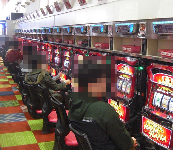 パチンコとパチスロがともに活気づいている店内において、もっとも目立っていたのが「ニューキングハナハナ-30」。