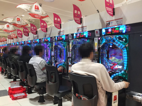 4円パチンコでは、「CRフィーバー機動戦士Zガンダム」に人気が集中。機種のポテンシャルを引き出せているプレイヤーも見られ、シマ全体が活気づいていた。