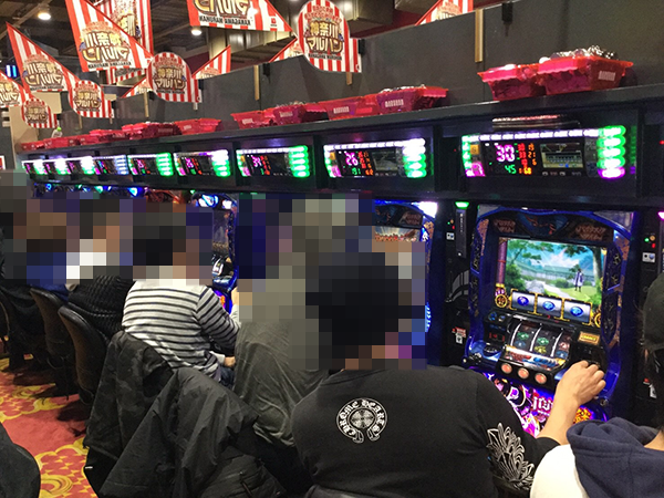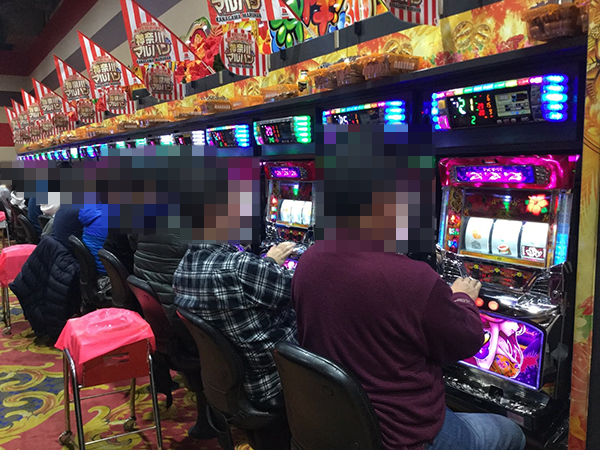 開店して間もない頃の21.27円パチスロでは、「沖ドキ!-30」や「バジリスク~甲賀忍法帖~絆」などがすぐさま満席。