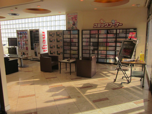 漫画が大量に用意されたレストスペースは清潔に保たれており、遊技の合間にリラックスして利用しているプレイヤーも多く見られた。