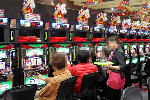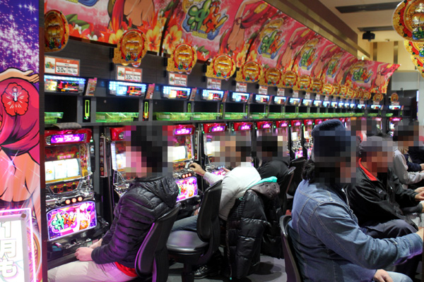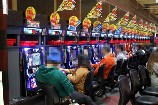取材に訪れた18時頃の店内の様子は、パチンコ・パチスロともに様々な機種が活気づき、いたる所でプレイヤーの笑顔が広がっていた。