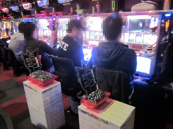 14時頃の1000円/47枚スロットコーナーで、ひときわ盛り上がっていたのは「SLOT魔法少女まどか☆マギカ」と「SLOT魔法少女まどか☆マギカ2」。どちらもフル稼働状態が続き、見事な活躍を見せるプレイヤーが続出していた。