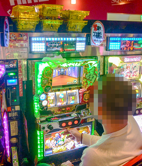 20円パチスロに目を移すと、「パチスロ黄門ちゃま 喝」や「パチスロ北斗の拳 強敵」で華やかな光景を目撃。シマ内のあちこちで、プレイヤーの満足そうな表情が見受けられた。