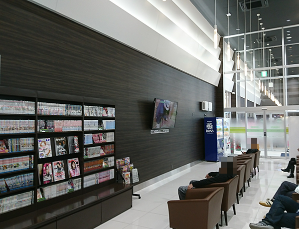 白を基調とした美しいレストスペースには、豊富な種類のマンガや雑誌を完備。休憩中も快適に過ごせるため、1日を通して気持ちよく遊技を楽しめるだろう。