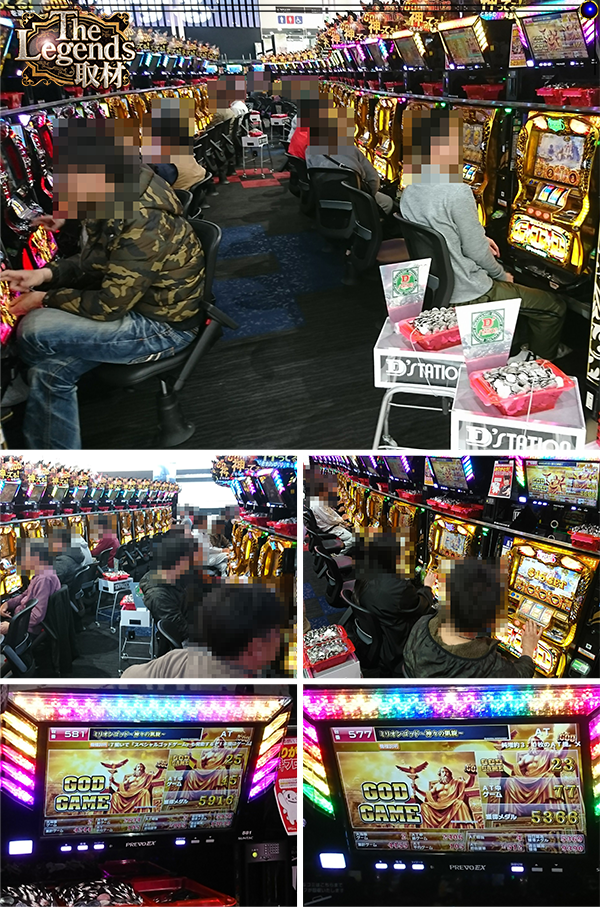 「ミリオンゴッド-神々の凱旋-」に最大獲得5000枚overが3台あった。「バジリスク~甲賀忍法帖~絆」の稼働率も高く、6名が1箱以上の出玉を獲得していた。