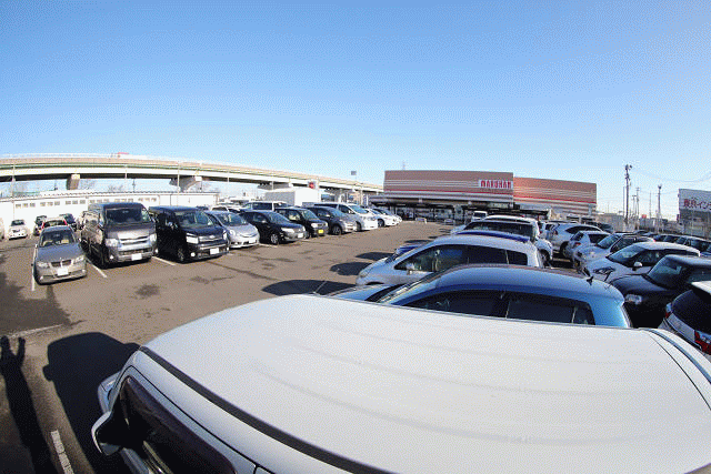「マルハン仙台新港店」は、冬の澄んだ空気の中で穏やかな陽光を受けていた。