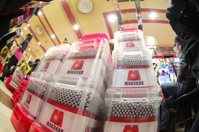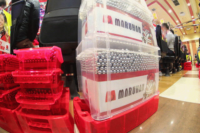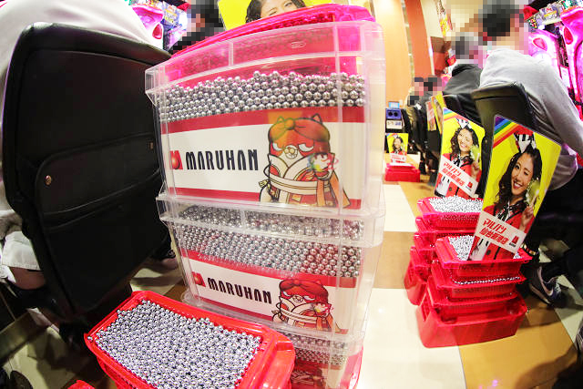 あっという間に、パチンコフロアの各コーナーでは、大・中・小のアートが創造され、玉箱の
