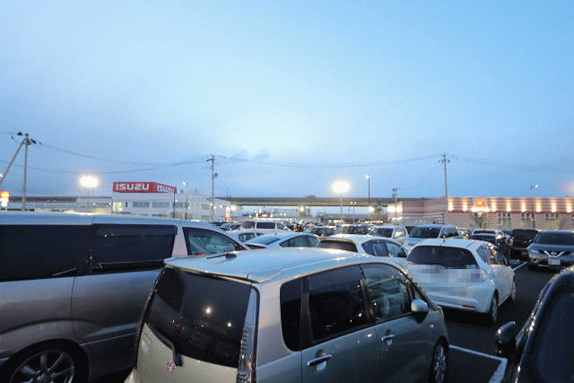 この日も早朝から、パチンコ・パチスロファン、そしてマルハンファンが続々と並ぶ。