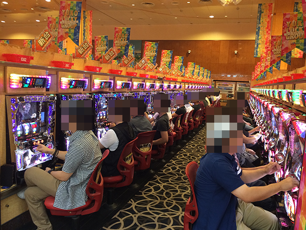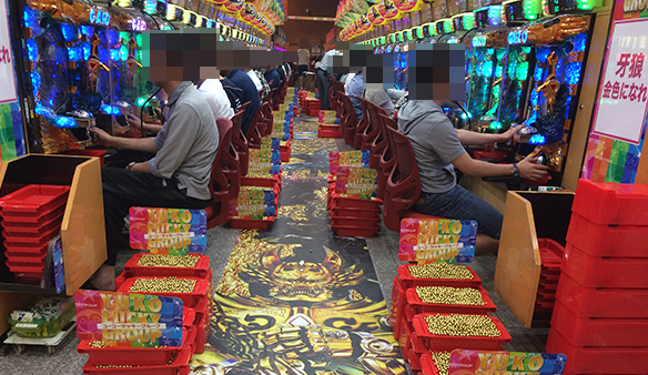 全体が活気に満ちているなかでも、定番人気機種の「CR牙狼 金色になれ」や「CR大海物語3スペシャル」といった2機種はプレイヤーの笑顔が満開。