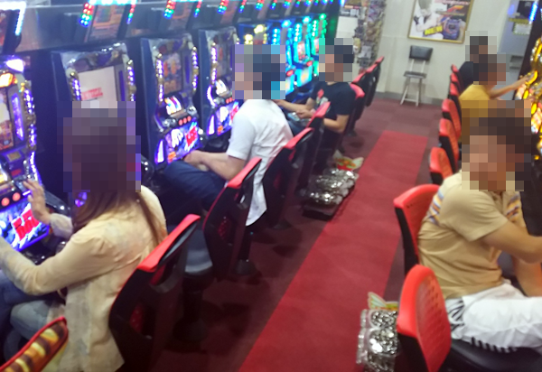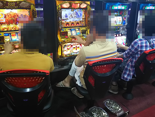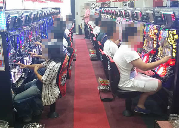 どの機種もほぼ満席となっていて、多くのプレイヤーが遊技を楽しんでいた。