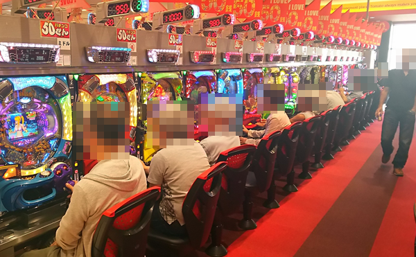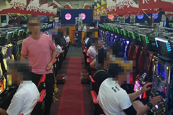 取材日は開店前の並びこそ控えめだったが、開店後は継続的にプレイヤーの数が増えていき昼過ぎにはホール全体の7割近くが埋まっていた。