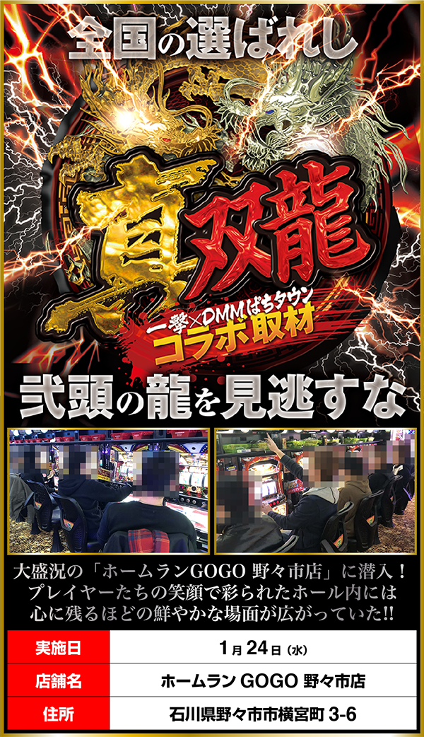 「真双龍」の舞台となったのは、マスコットキャラクターが描かれている看板が目印の「ホームランGOGO 野々市店」。