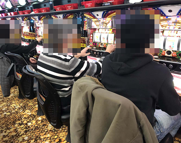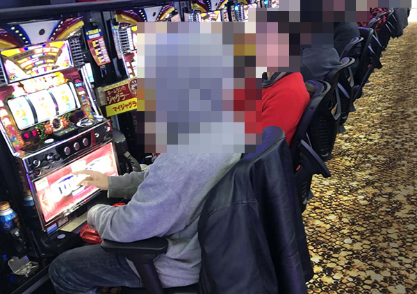 「マイジャグラーⅢ」を中心に、活気づいているホール内のいたるところで笑顔に出会えた。