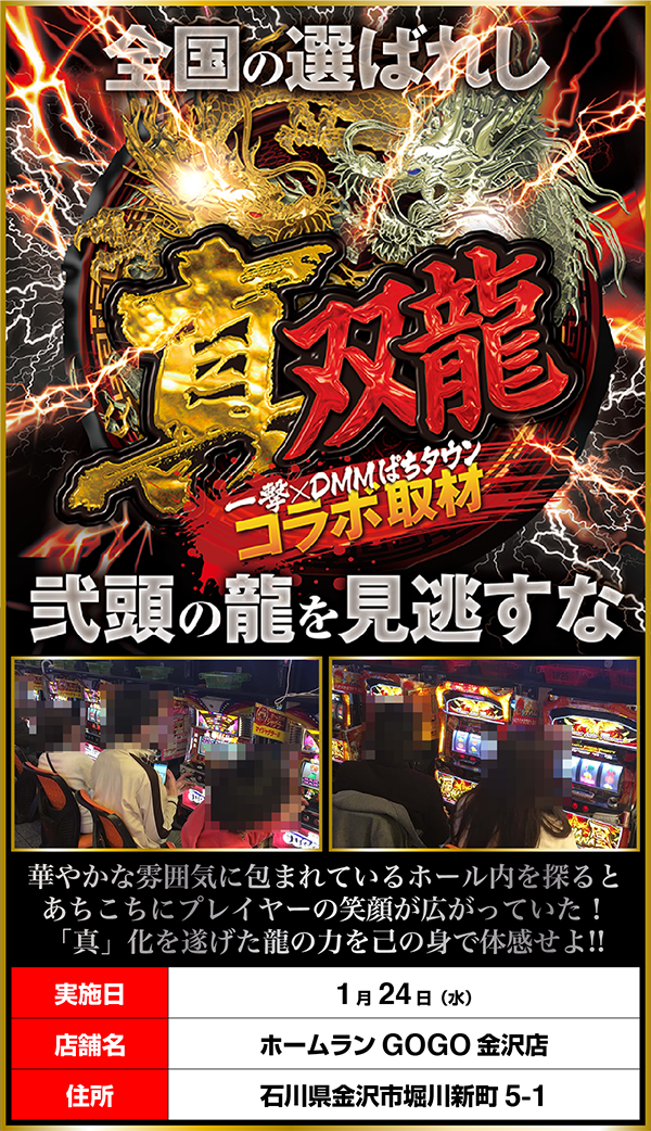 遊技面と環境面がどちらも優れている「ホームランGOGO金沢店」にて、たくさんの笑顔がみられた「真双龍」であった。