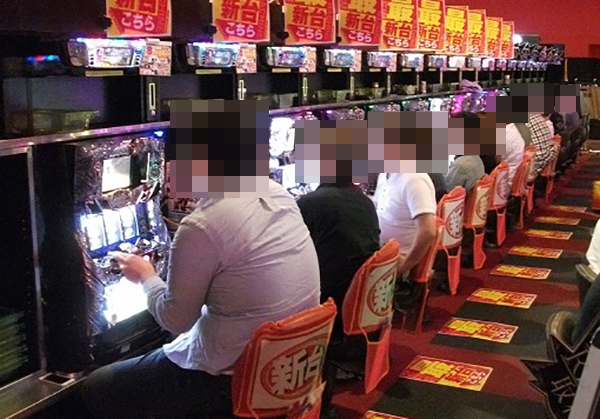 4円パチンコでは、「CRヱヴァンゲリヲン10」がほとんど満席と賑わいをみせていた。