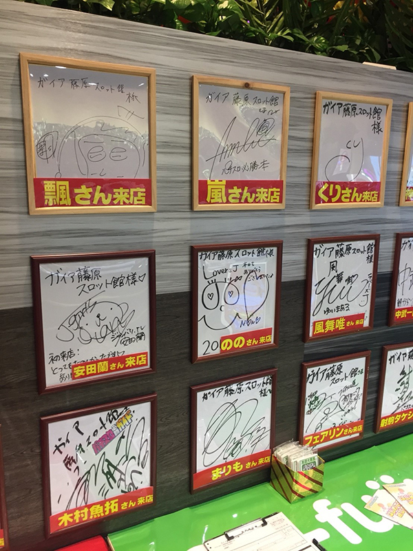 アイドルやライター陣のサインが飾られていることからも、多くのファンに愛されていることが実感できる「ガイア藤原スロット館」。
