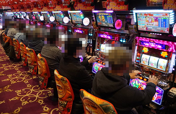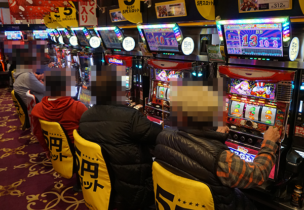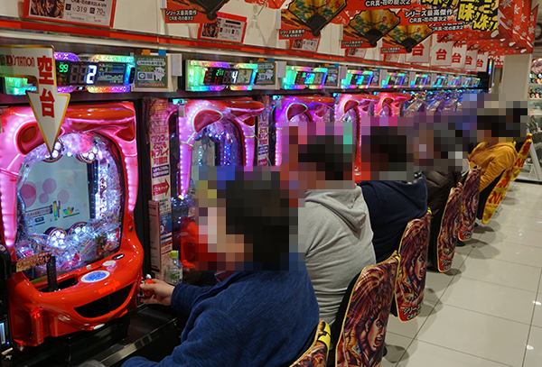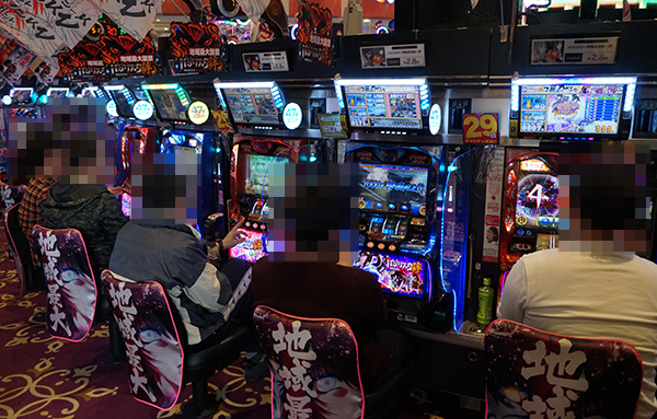 「CR真・花の慶次2」や「CRフィーバー機動戦士Zガンダム」を中心に、4円パチンコの盛り上がりも大きい。イキイキとした表情でハンドルを握っている姿からは、有意義な時間を過ごせていることが伝わってきた。