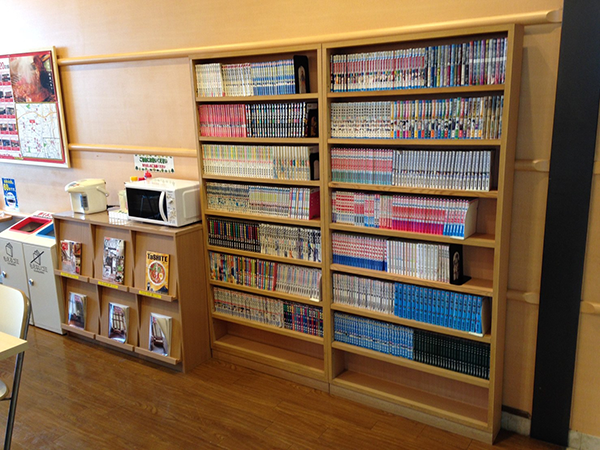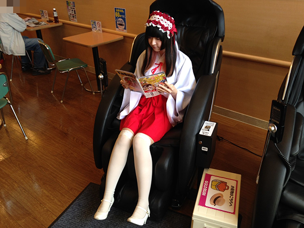 マッサージチェアや漫画本などが完備された休憩スペースの居心地もよく、かのんちゃんもすっかりくつろぎモードになっていました(∩´ω`∩)