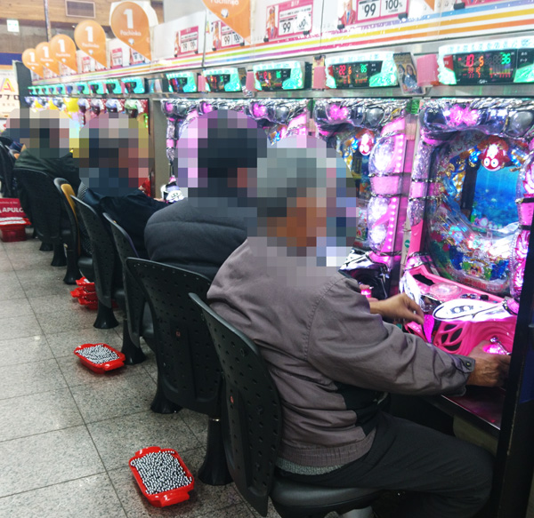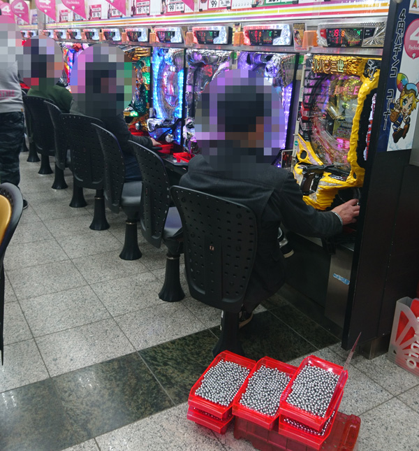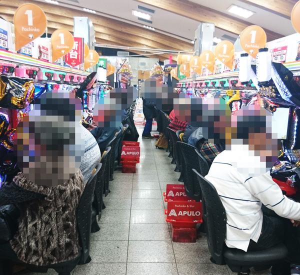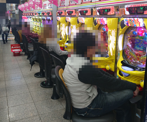 14時ごろのパチンココーナーでは、1円パチンコの人気が最高潮。