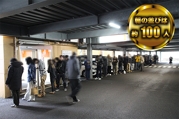 取材日となった1月9日はあいにくの悪天候にもかかわらず、朝イチから約100名のプレイヤーが列をつくっていた。立体駐車場が設けられていることも、雨の日にうれしいポイントのひとつだろう。
