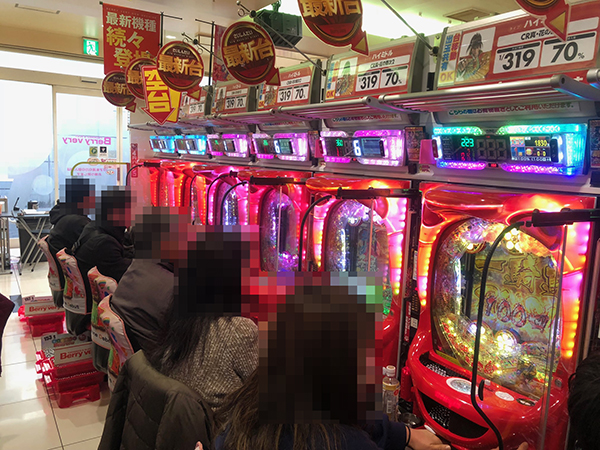 4円パチンコで、この日最も煌びやかな空間が広がっていたのは「CR牙狼GOLDSTORM翔」。イキイキとした表情で遊技をする姿も目立ち、有意義な時間をすごせていることがうかがえた。