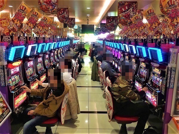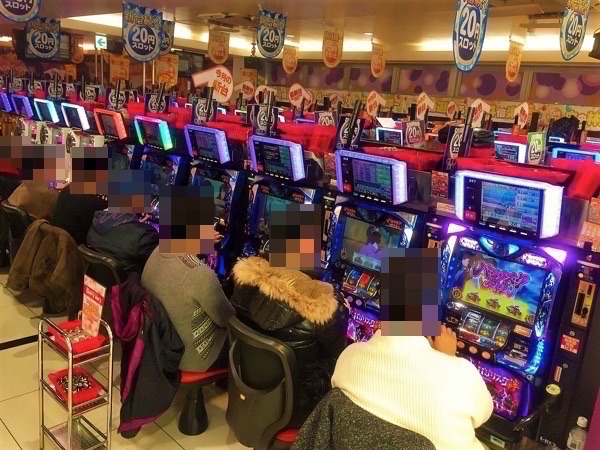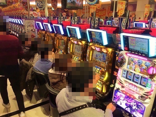 20円パチスロをみると、「バジリスク〜甲賀忍法帖〜絆」や「ミリオンゴッド-神々の凱旋-」、「SLOT魔法少女まどか☆マギカ」といったAT・ART機が大にぎわい。なかには、機種の特徴をうまく活かせているプレイヤーも多数存在していた。