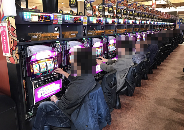 また、ジャグラーシリーズや「バーサス」といったボーナスタイプも支持されており、シマ全体が明るい空間となっていた。