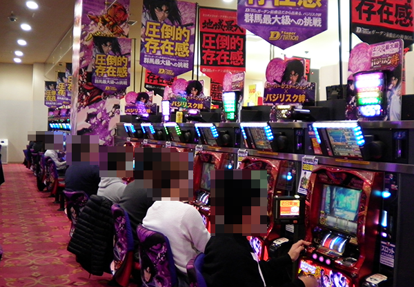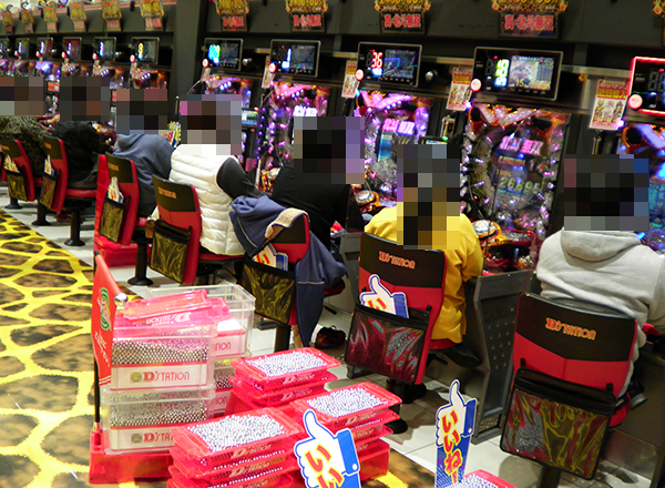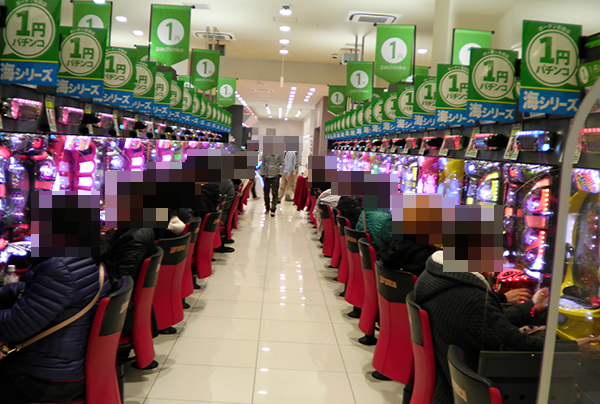 この日も大勢のプレイヤーが訪れ、パチンコとパチスロの両方からにぎわいが感じられた。