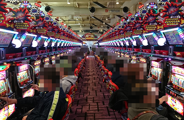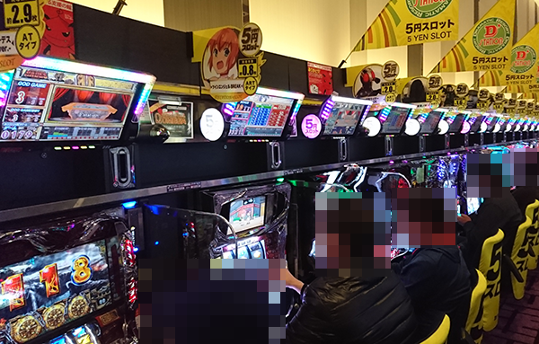 「ぱちスロ 仮面ライダーBLACK」や「アナザーゴッドハーデス」などが活気づいており、プレイヤーたちは満面の笑みを浮かべていた。