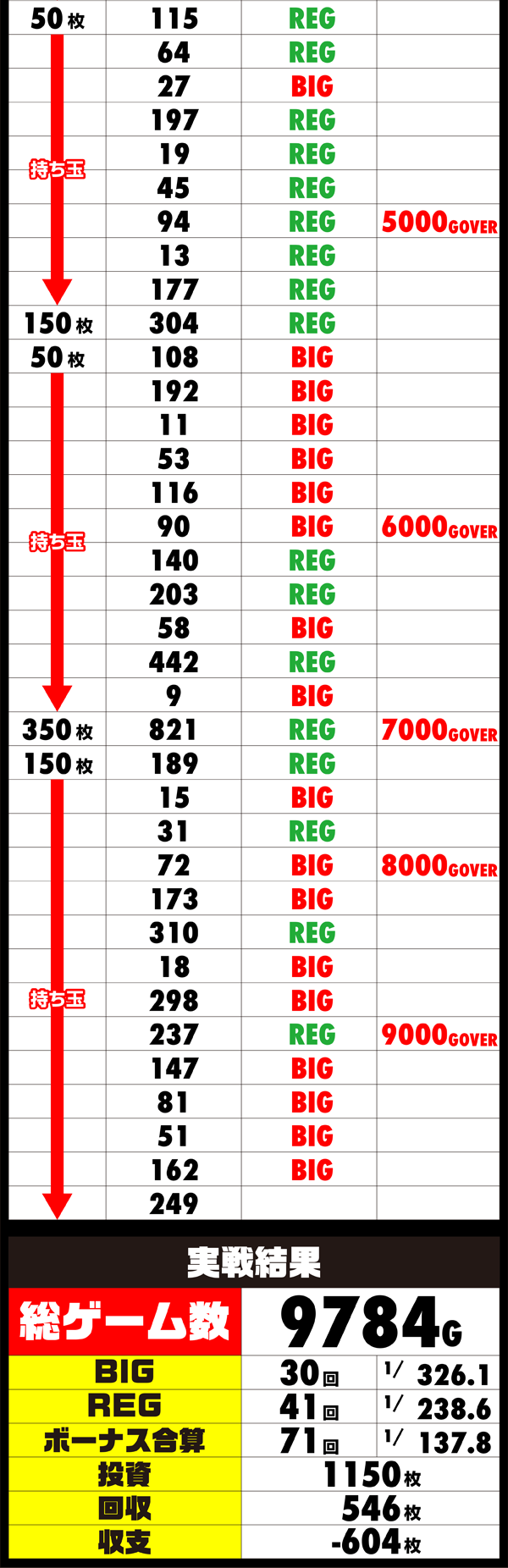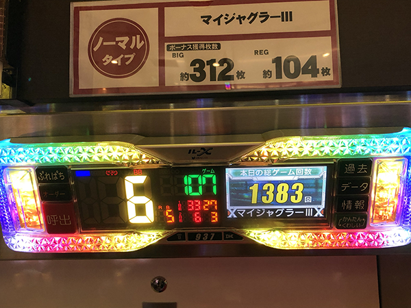 15時を過ぎた頃からはREGのかたよりによって、追加投資も増えてしまい、出玉の面でも暗雲が立ち込める状況。