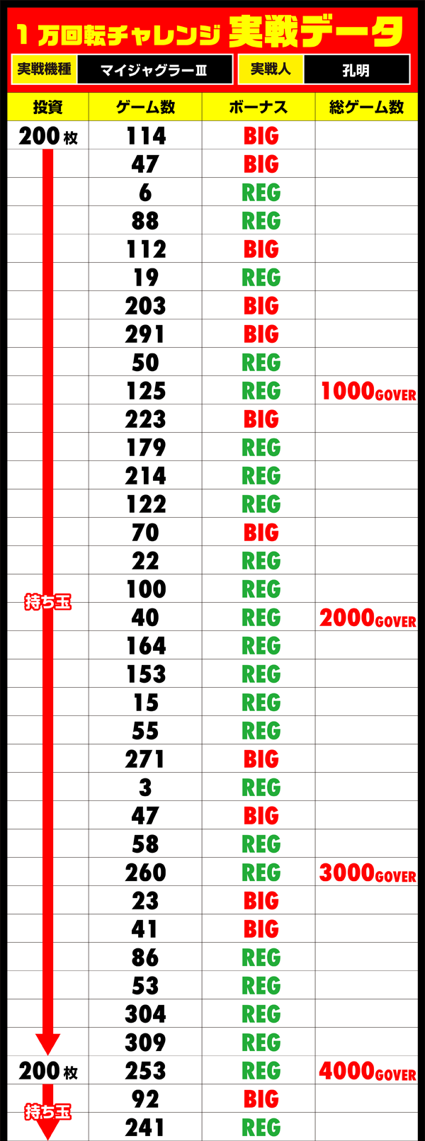 通常時の消化とBIG獲得のどちらにおいてもスピードは遅いが、残された時間で逆転劇をみせることはできるのか!?