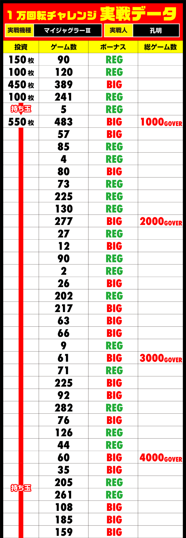 ボーナス確率は高設定といった数値となり、チャレンジ失敗ながらも満足そうな孔明であった。