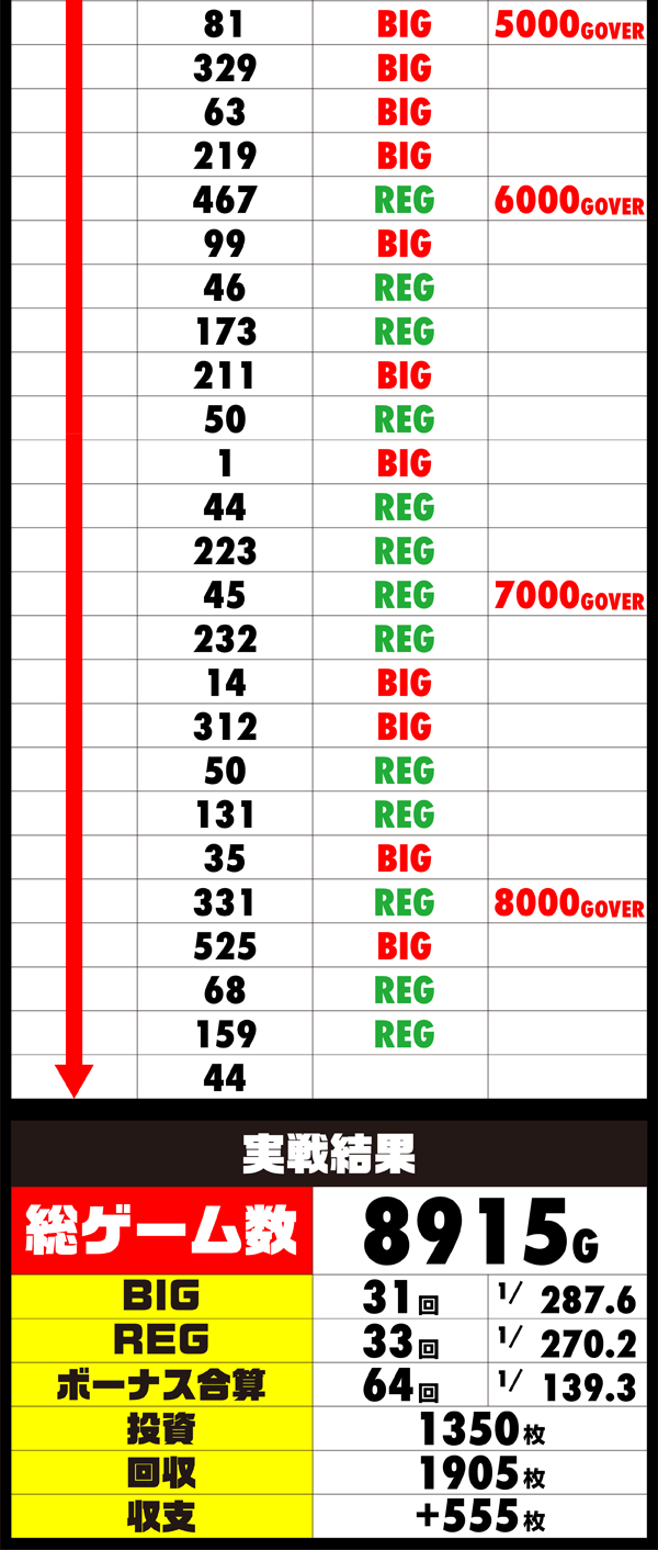 差枚はプラスと、自分のなかで勝手に立てた目標は達成。