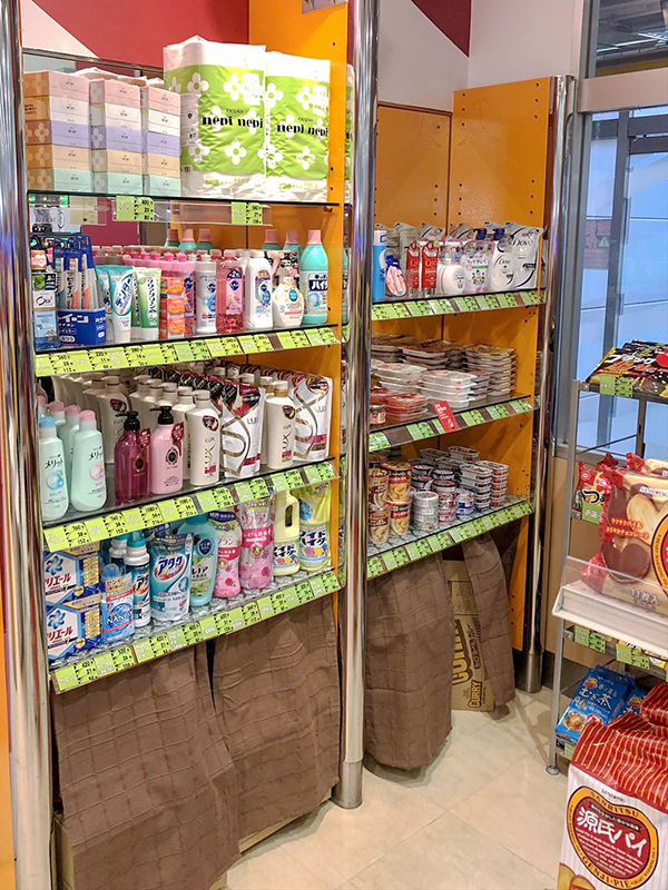 景品コーナーは食料品から日用品まで充実の品揃え。種類も数多く取り揃えてあり、日々の生活にも役立ちそうだ。