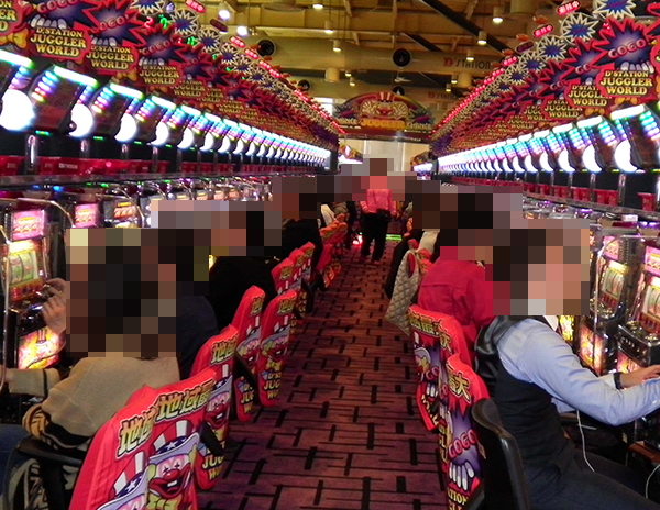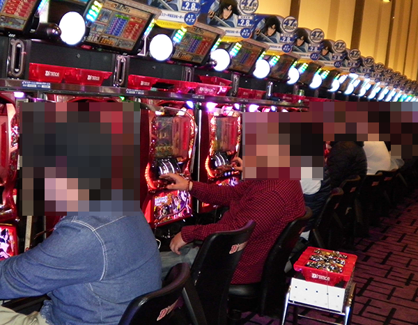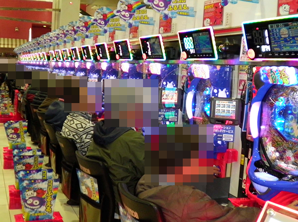 4円パチンコでは、「CR大海物語4」が大人気。にこやかな表情で遊技をおこなうプレイヤーが多く、明るいムードが感じられた。