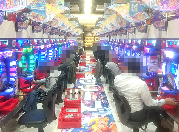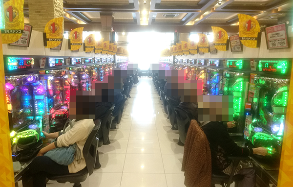 パチンコとパチスロの低貸し玉コーナーもにぎやかな雰囲気。