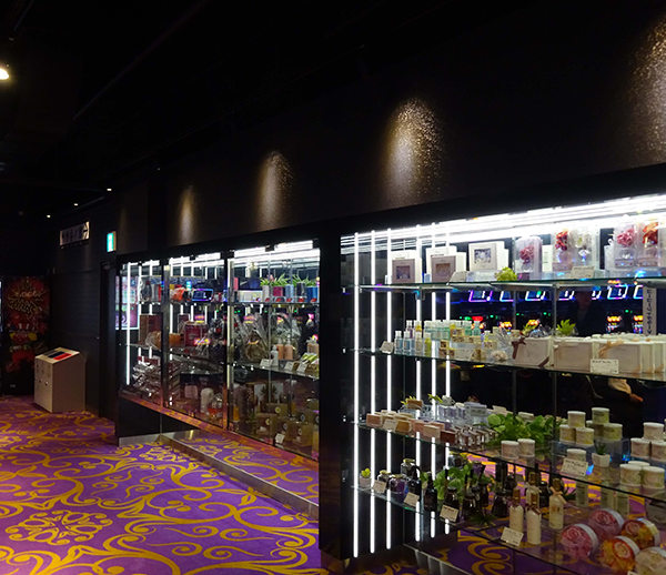 ライトアップされた賞品コーナーも目をひかれた要素だ。バスキューブやアロマなどが並んでおり、プレゼントにもピッタリといったイメージを持った。