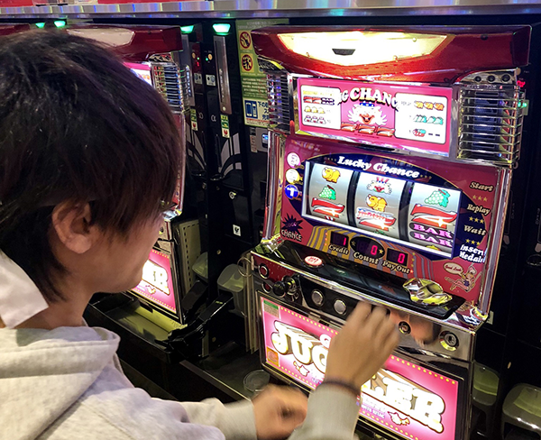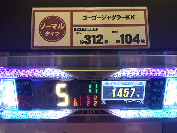 入店して「ゴーゴージャグラー」を実戦機種に選び、さっそくチャレンジスタート!