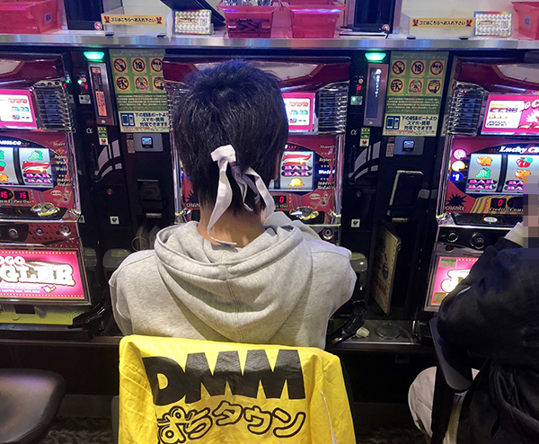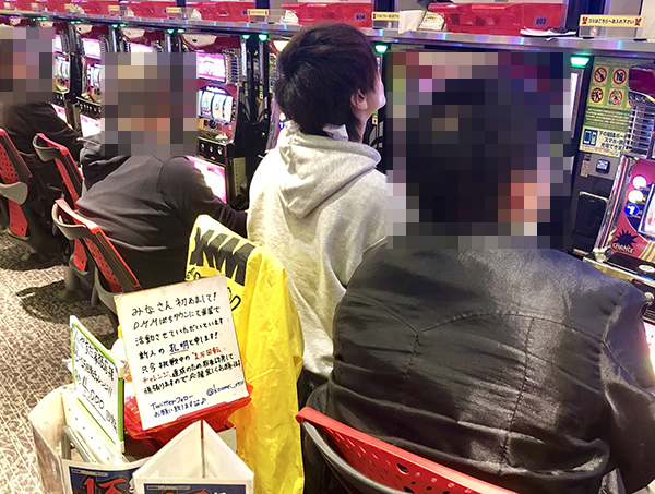 朝イチの整列場所をみると、人目も気にせずに整理券を高々とかかげている姿が…。ただでさえ目立つDMMぱちタウンジャンパーをきていることにくわえ、大きな行動をとるなど、とにかく自己アピールがしたいことだけは伝わってきた。