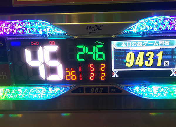 後半戦に入っても、勢いは出玉にばかり偏ってしまい、総回転数は伸び悩んでいた。